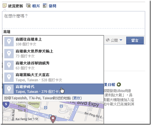 新的Facebook訊息發表功能裡,可以直接在網頁端進行打卡,告訴朋友你所在的位置。 而且這個網頁版打卡不是自動偵測,而是可以自己輸入的,所以.........