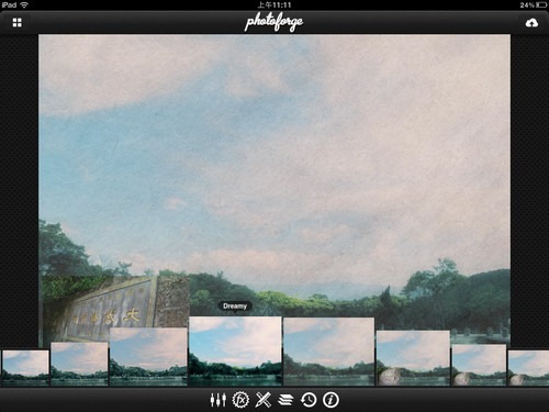 安裝並進入Photoforge2後,讀取照片就能開始進行編修,這時可以看到下方有一排調整工具列,按按看,玩玩看便成開始嘗試各種不同的效果。